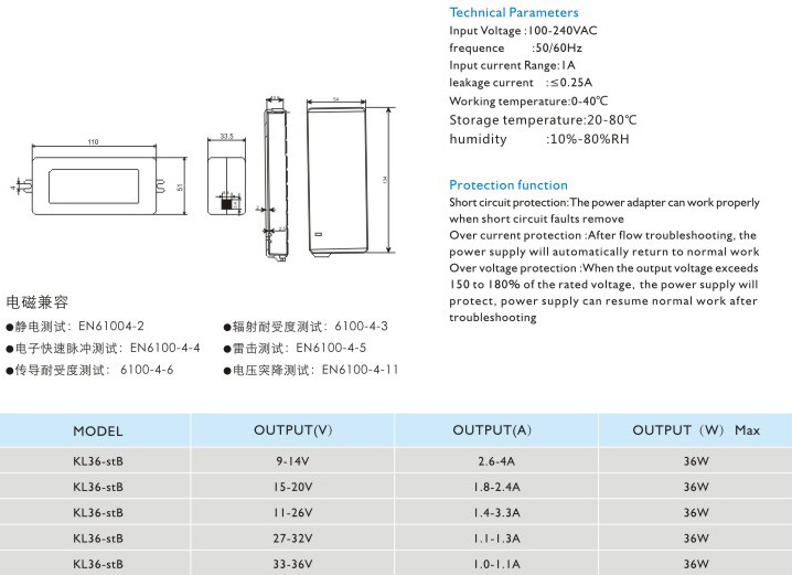 過流保護(hù):過流故障排除后,電源將自動(dòng)恢復(fù)正常工作 過壓保護(hù):當(dāng)輸出電壓超過額定電壓的150~180%時(shí),電源將保護(hù),故障排除后電源能恢復(fù)正常工作 輸入電壓:100-240VAC 頻率:50/60Hz 輸入電流:1A 漏電電流:<0.25A 工作溫度:0-40℃ 貯藏溫度:-20-80℃ 濕度:10%-80%RH" />